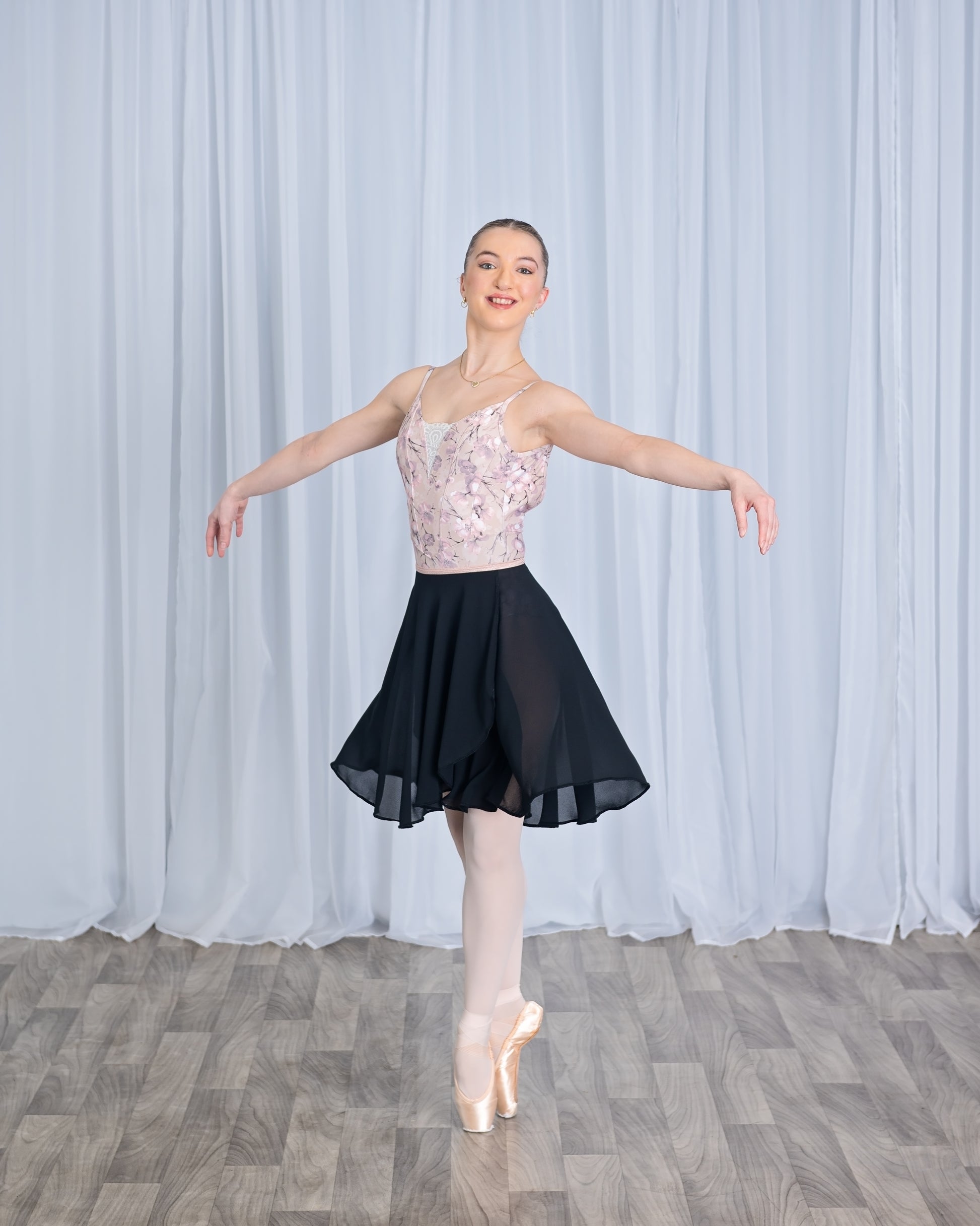 This high-low wrap skirt will make you feel like a prima in every class and rehearsal! The lightweight fabric and full-circle hem make for gorgeous movement from pliés to révérence, and every step in between.
